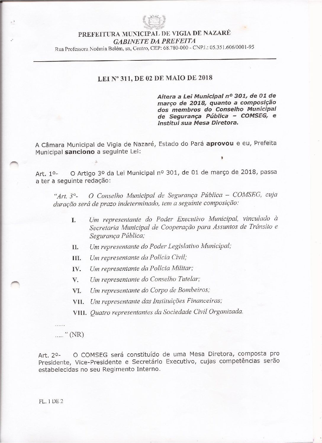 Lei nº 311 – Composição dos Membros do COMSEG
